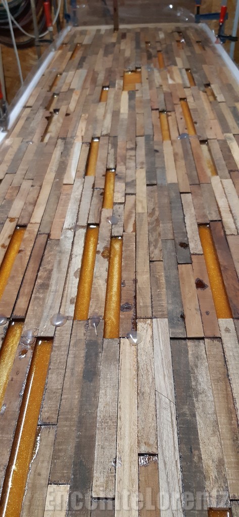 La résine d'époxy, soyeuse, brillante, mât, sans limite de couleurs, de paillettes, brute, polis, lustrée, envoûtante...