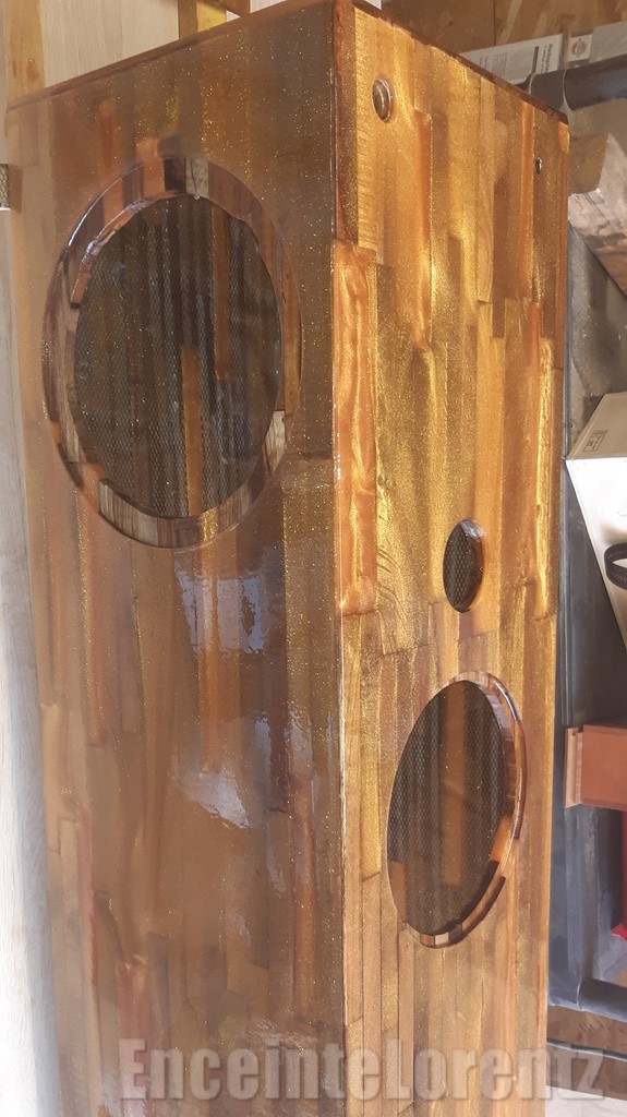 L'alchimie de ces différents domaines nous permet de créer des enceintes d'art et d'exception, travaillées aux outils et à la main, le bois est de préférence local, chêne, hêtre, olivier, noyer...mais surtout recyclé, aucune nouvelle coupe d'arbre...parfois une enceinte peut être composée de plus de 300 pièces différentes et nécessiter plus de 150 heures de travail...
